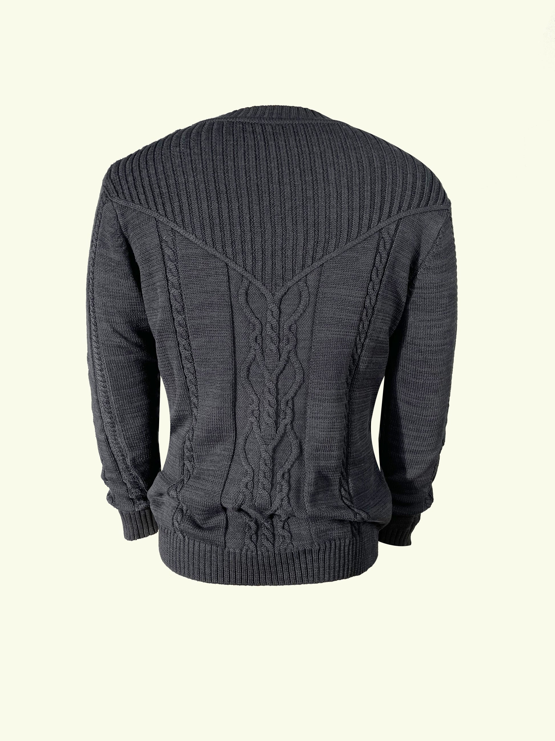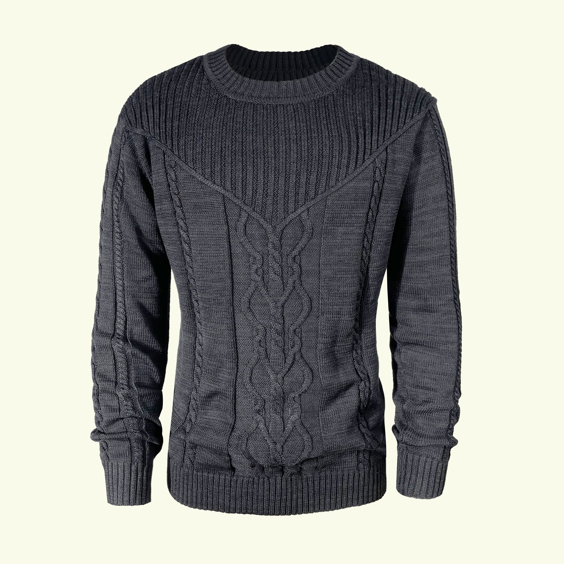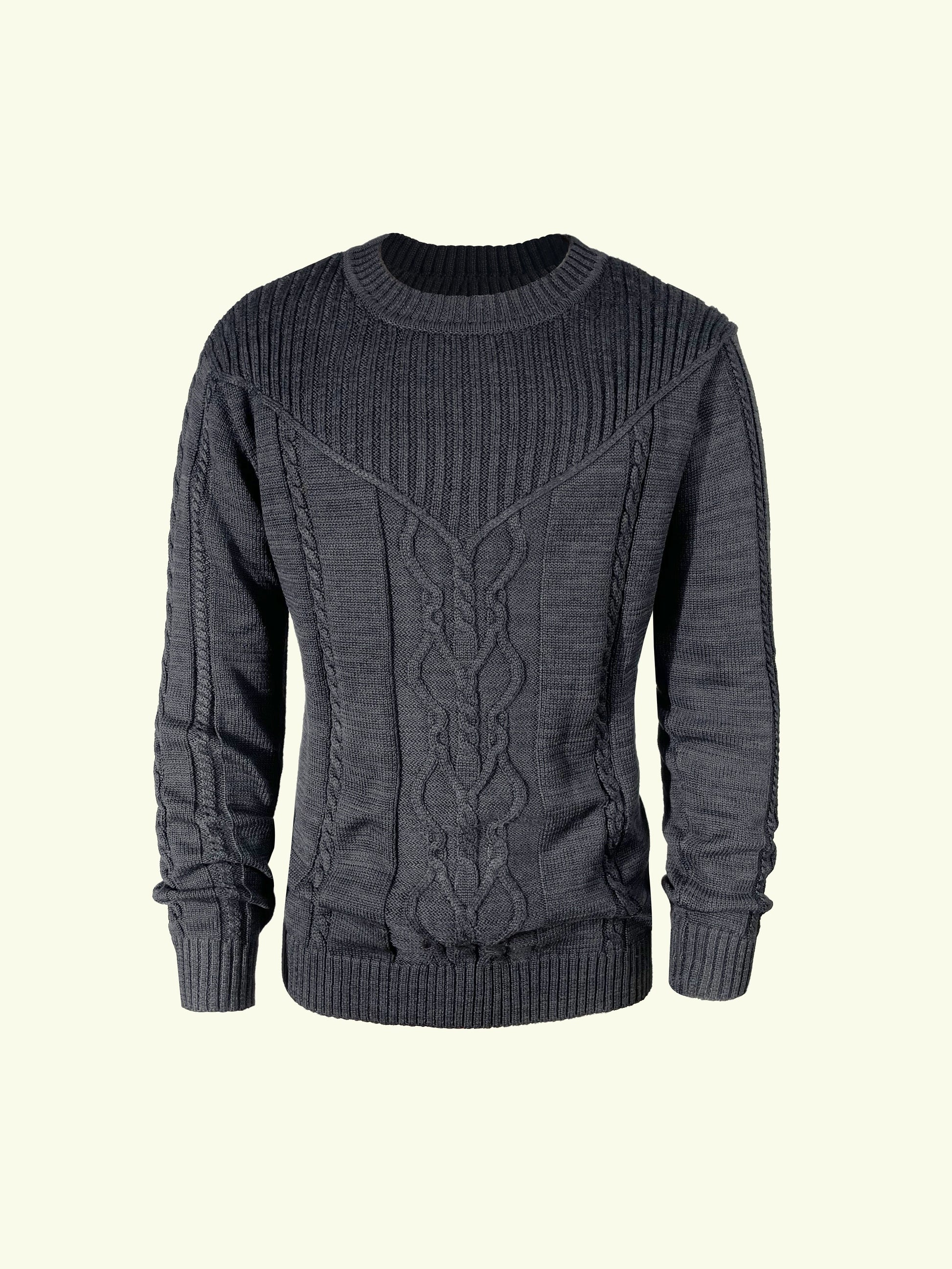 Men's Casual Black Ribbed Knit Pullover Sweater For Winter