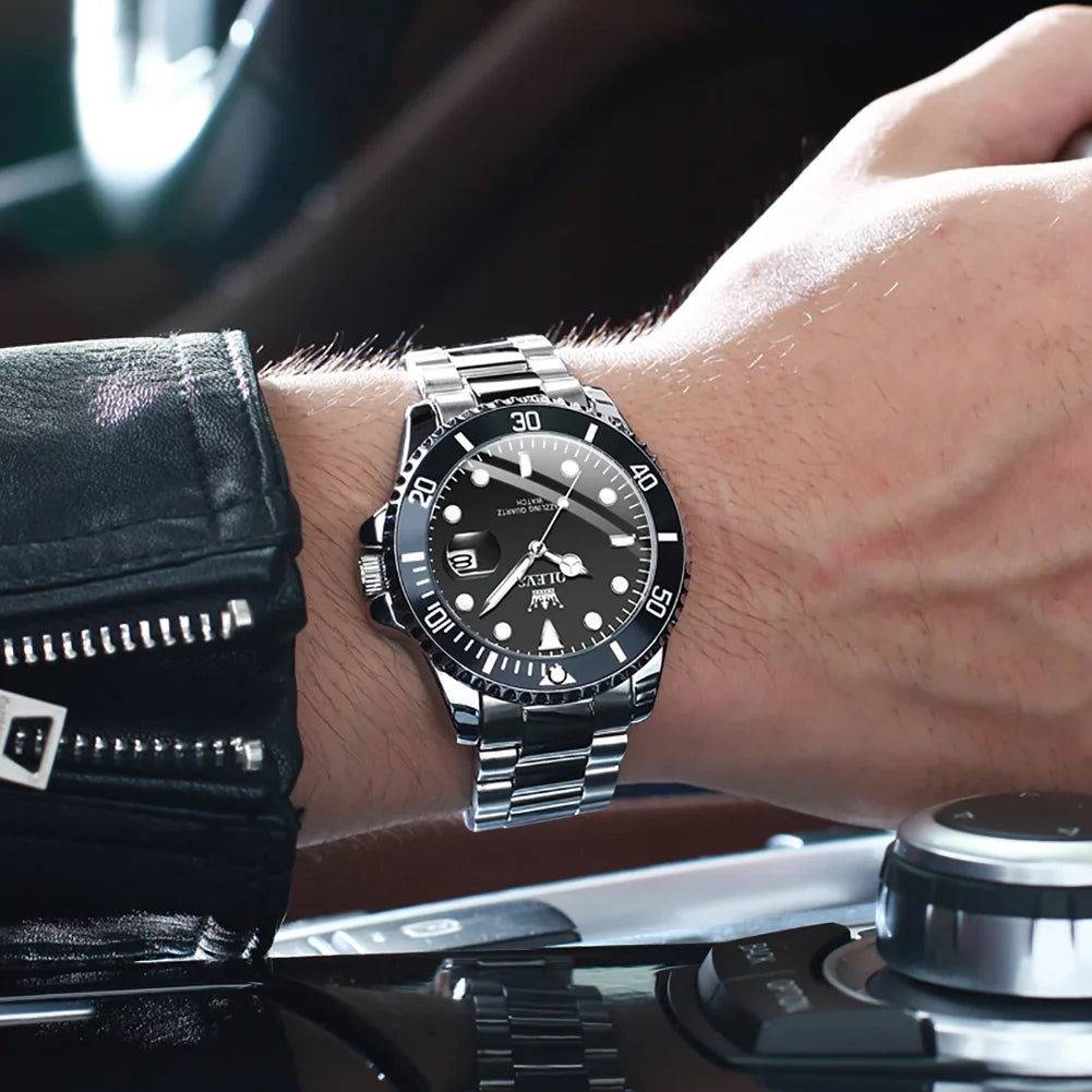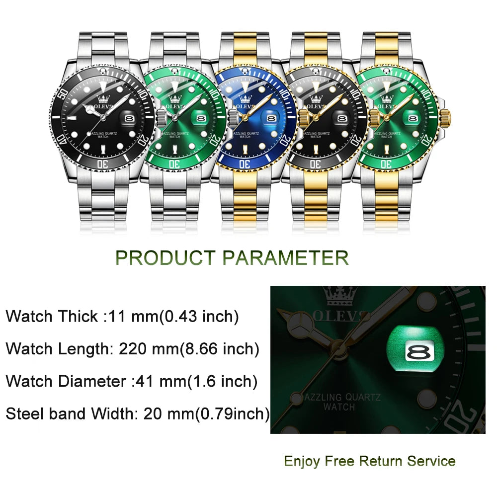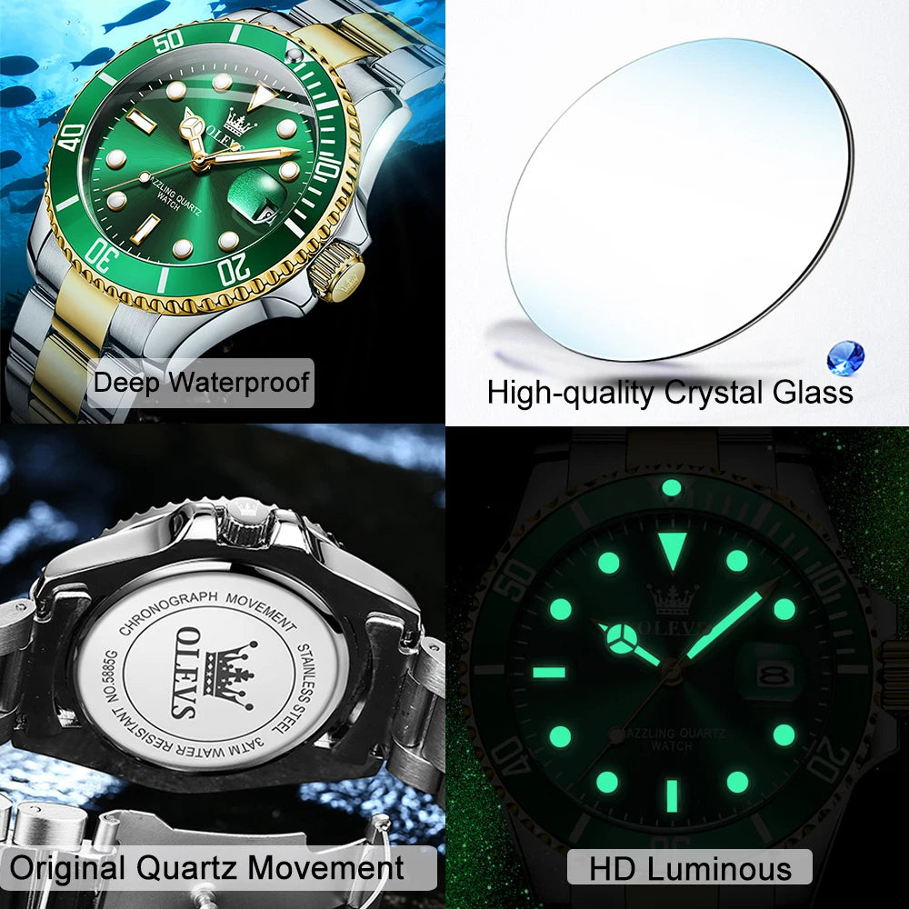 Top Brand Men Watch Green Luxury Fashion Waterproof Quartz Sports Stainless Steel Watches for Men Wristwatch Reloj Hombre + Box